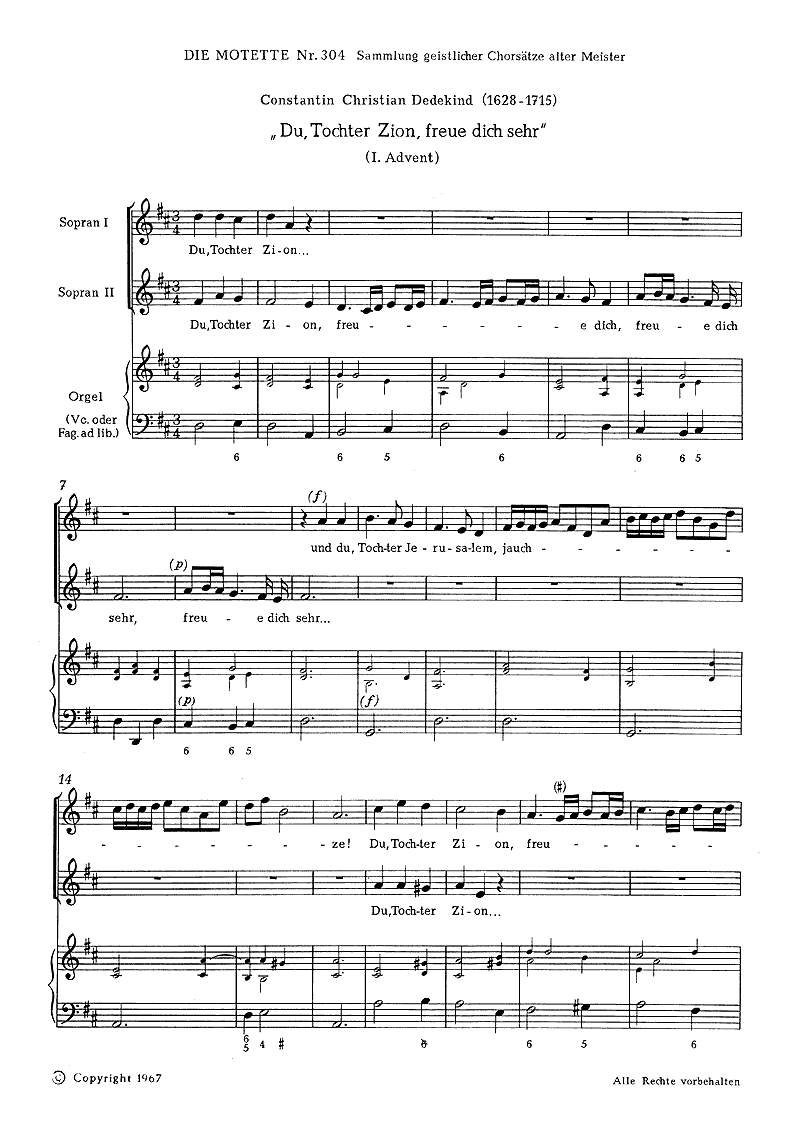 Du, Tochter Zion, freue dich - Notenbeispiel