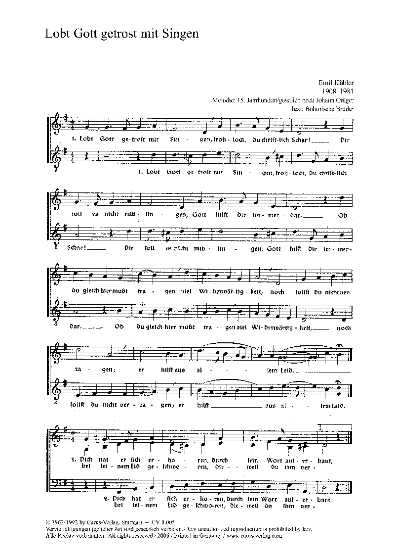Lobt Gott getrost mit Singen - Notenbeispiel