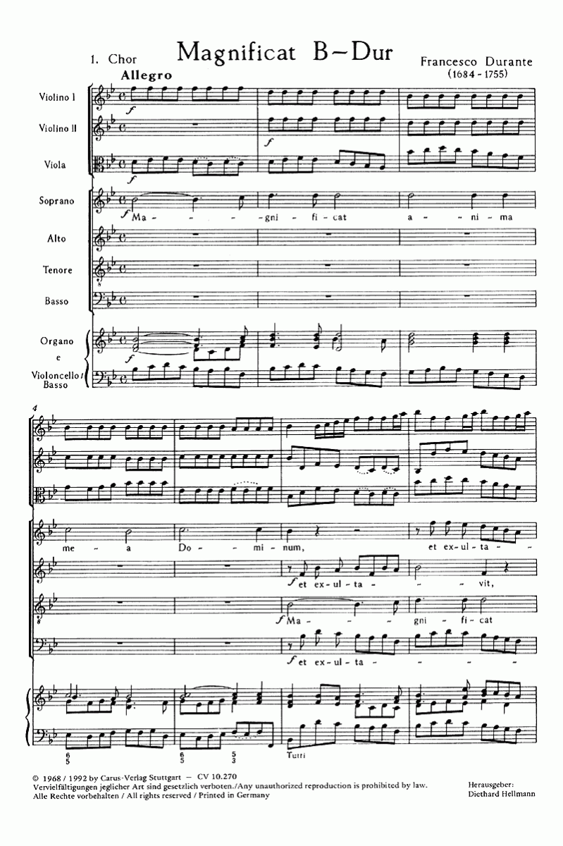 Magnificat in B - hier klicken Magnificat in B (Vokal Soli SATB; Chor SATB; 2 Violinen; Viola; Generalbass), Partitur