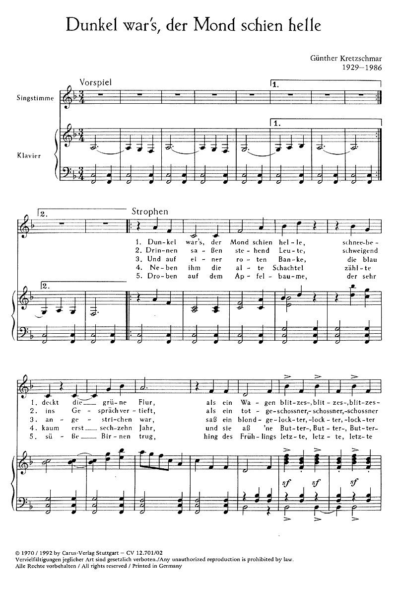 Dunkel war's, der Mond schien helle. 10 Lieder und Chansons - Notenbeispiel