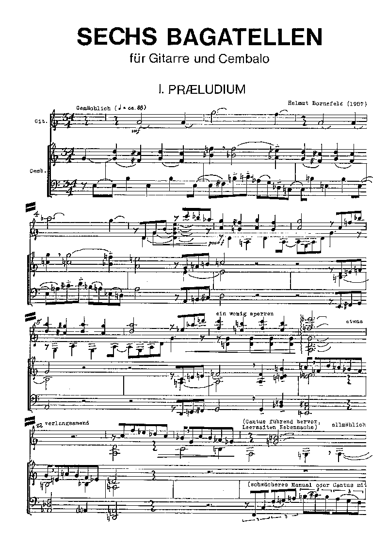 Bornefeld: Sechs Bagatellen - Notenbeispiel