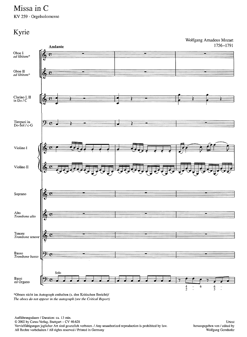 Zusatzinfo/Inhalt Der Beiname dieser Messe verdankt sich der eigenständig-solistischen Präsenz des Orgelinstruments während des 'Benedictus'-Abschnittes. Damit steht KV 259 in einer bis in die 1730er Jahre zurückreichende Tradition, die sich durch Komponistennamen vor allem aus dem Wiener Raum, wie Georg Reuter, Joseph Haydn, Karl Ditters von Dittersdorf oder Johann Baptist Vanhal belegen lässt.