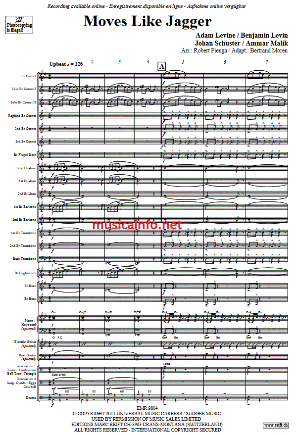 Moves Like Jagger - hier klicken Moves Like Jagger (Brassband), Partitur und Stimmen