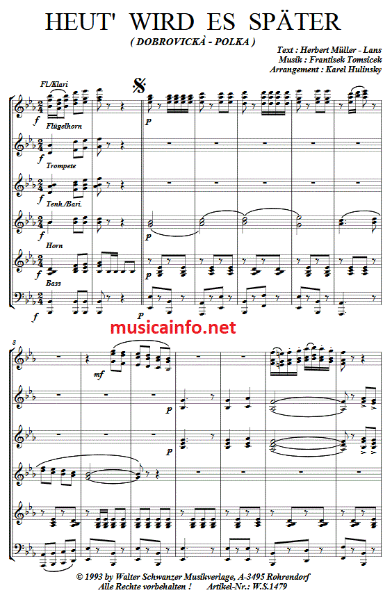 Dobrovicka Polka (Heut' wird es später) - hier klicken Dobrovicka Polka (Heut' wird es später) (Blasorchester), Direktionsstimme und Stimmen
