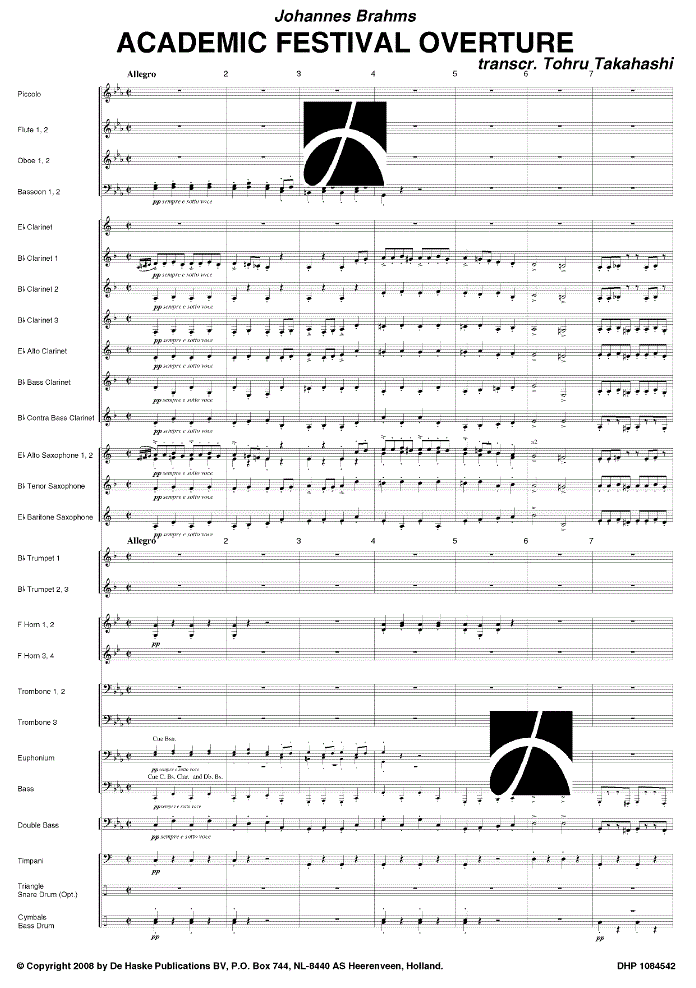 Academic Festival Overture - hier klicken Academic Festival Overture (Blasorchester), Partitur und Stimmen