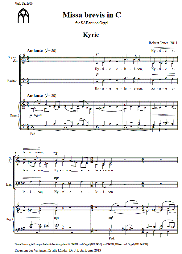 Missa Brevis in C - hier klicken Missa Brevis in C (Chor SAB; Orgel), Partitur
