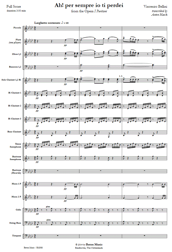 Ah! per sempre io ti perdei (from the Opera I Puritani) (Blasorchester), Partitur