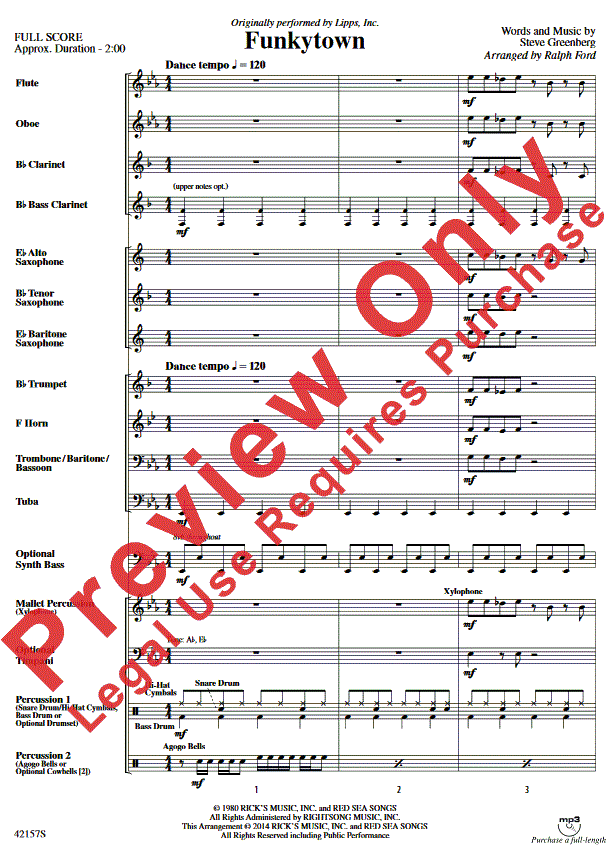 Funkytown - hier klicken Funkytown (Blasorchester), Partitur