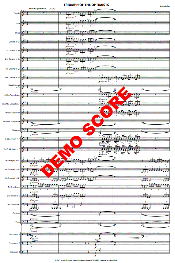 Zusatzinfo/Inhalt Triumph of the Optimists ist ein schwungvolles, feierliches Eröffnungswerk. Nach der Eröffnungsfanfare erklingt eine ruhige Passage gefolgt von einem kräftigen Zwischenteil in den tiefen Registern, der wieder in die Anfangsfanfare führt.