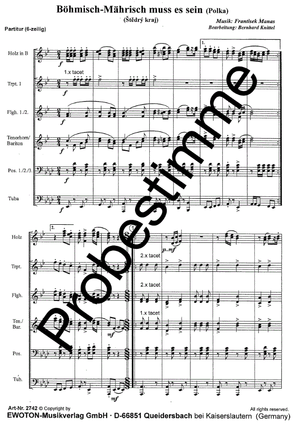 Musterpartitur * MusterpartiturFelder mit einem Sternchen (*) sind nur für Vereinsmitglieder nach Anmeldung ersichtlichhier klicken