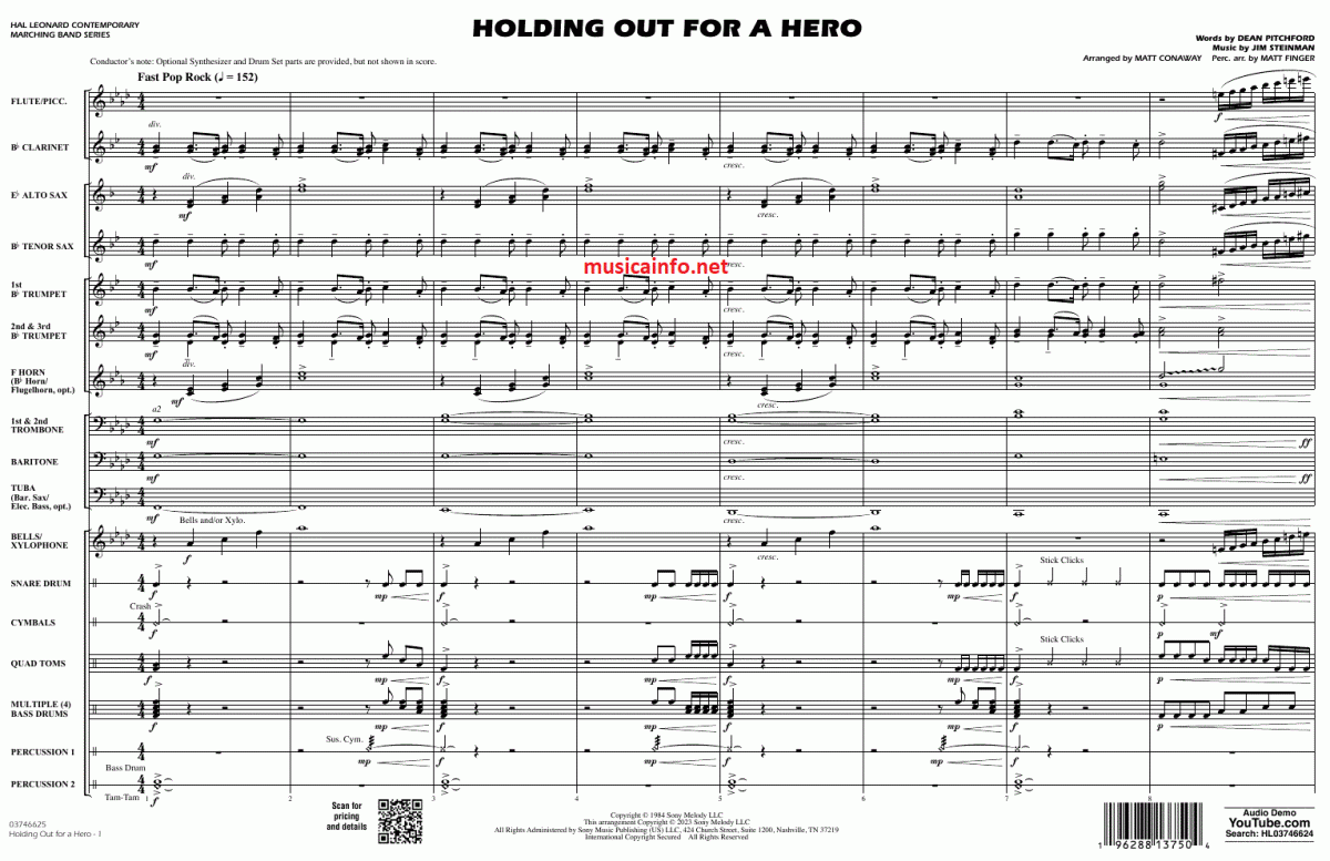 Holding Out for a Hero - hier klicken Holding Out for a Hero (Blasorchester; Marschkapelle), Partitur und Stimmen