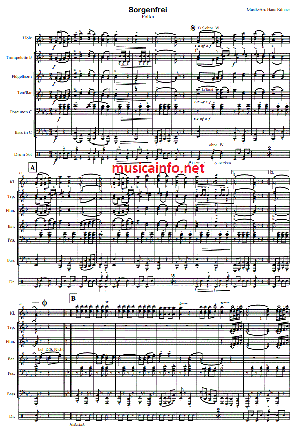 Sorgenfrei Polka - Notenbeispiel