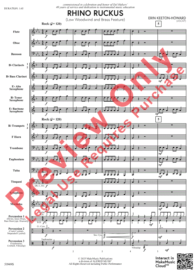 Zusatzinfo/Inhalt Präsentieren Sie Ihre tiefen Holz- und Blechbläser in „Rhino Ruckus“, einem energiegeladenen Werk von Erin Keeton-Howard, das richtig rockt! Ein optionales Schlagzeug unterstreicht den Stil, und es gibt eine Fülle an Material, an dem alle Bandmitglieder Freude haben werden. Auch die Choreografie bietet viele Möglichkeiten. Ein Riesenspaß!